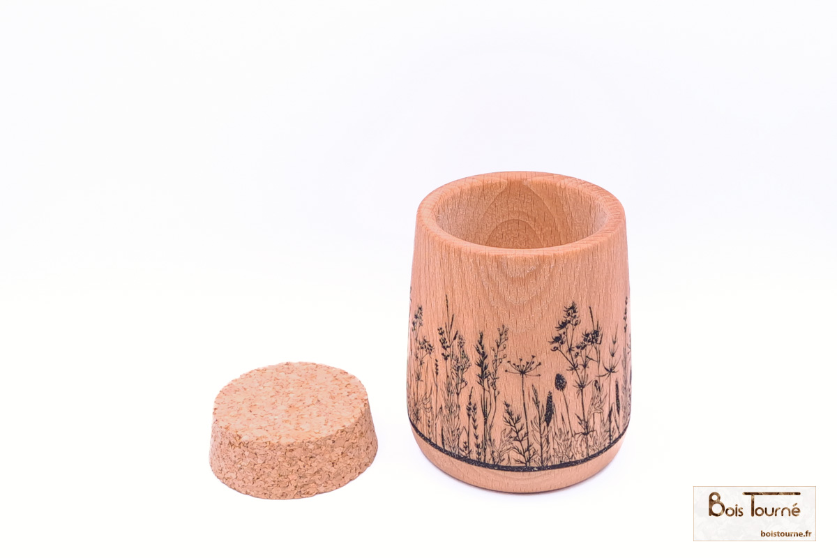 Petit bocal en bois, entièrement réalisé à la main dans mon atelier.