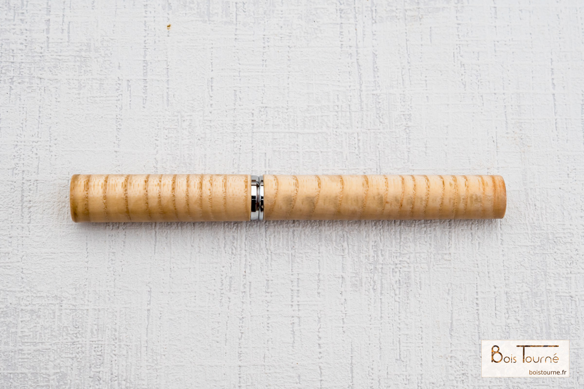 La particularité de ce stylo est qu’il a été réalisé en bois de travers pour voir les les strie du bois.