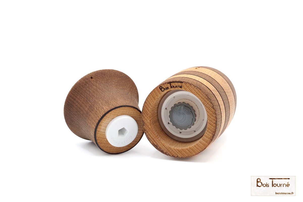 Le mécanisme peut être utilisé pour le sel (même humide), le poivre ou d’autres épices. La granulométrie est réglable par une molette située sous le moulin.